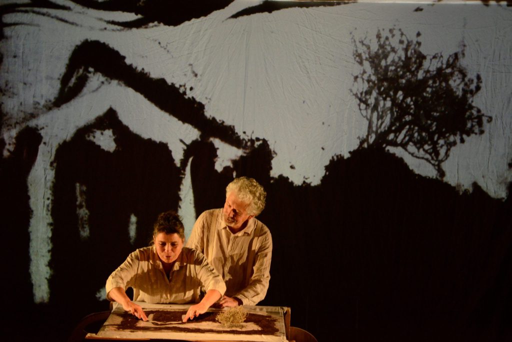 Sur scène seulement deux acteurs , ils incarnent une multitude de personnages, ils illustrent en direct les scènes à l’aide d’un banc d’animation, c’est une table avec plusieurs surfaces de verre où les objets déposés sont filmés par une caméra située sous les plateaux. Ces images sont projetées en direct sur un écran à l’arrière du décor. C’était très beau.