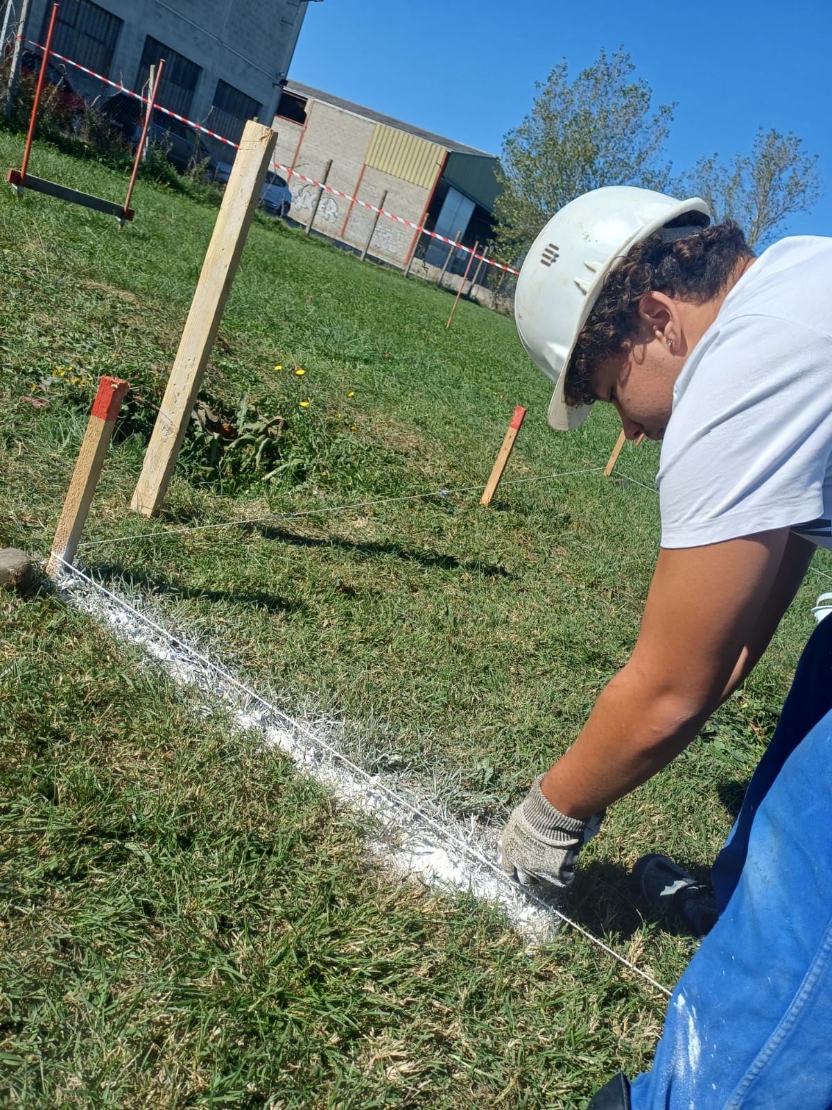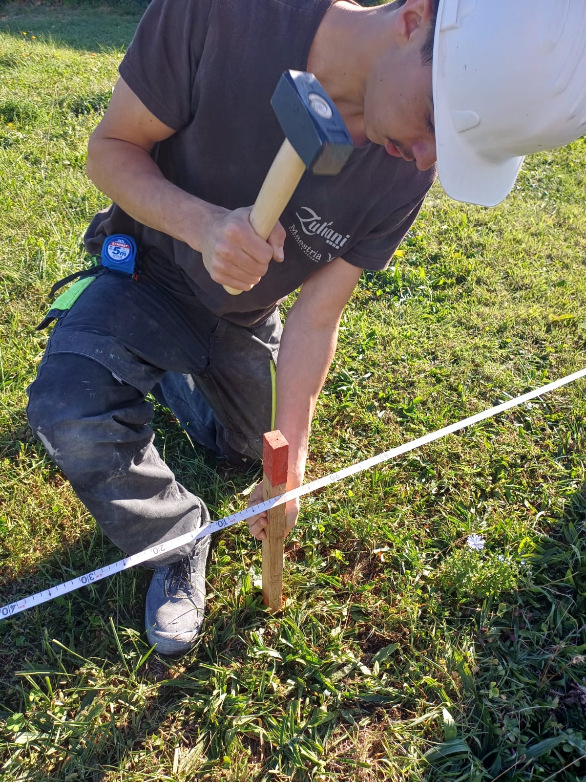 - Implantation des Fondations et de la Dalle : Pas de place pour l'approximation ! Les piquets alignés "aux cordeaux" grâce à la précision chirurgicale du théodolite.