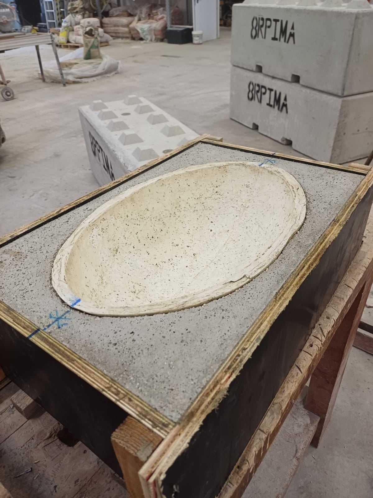 - Création du contre-moule en béton, destiné à stabiliser le moule souple lors des phases de coulage.