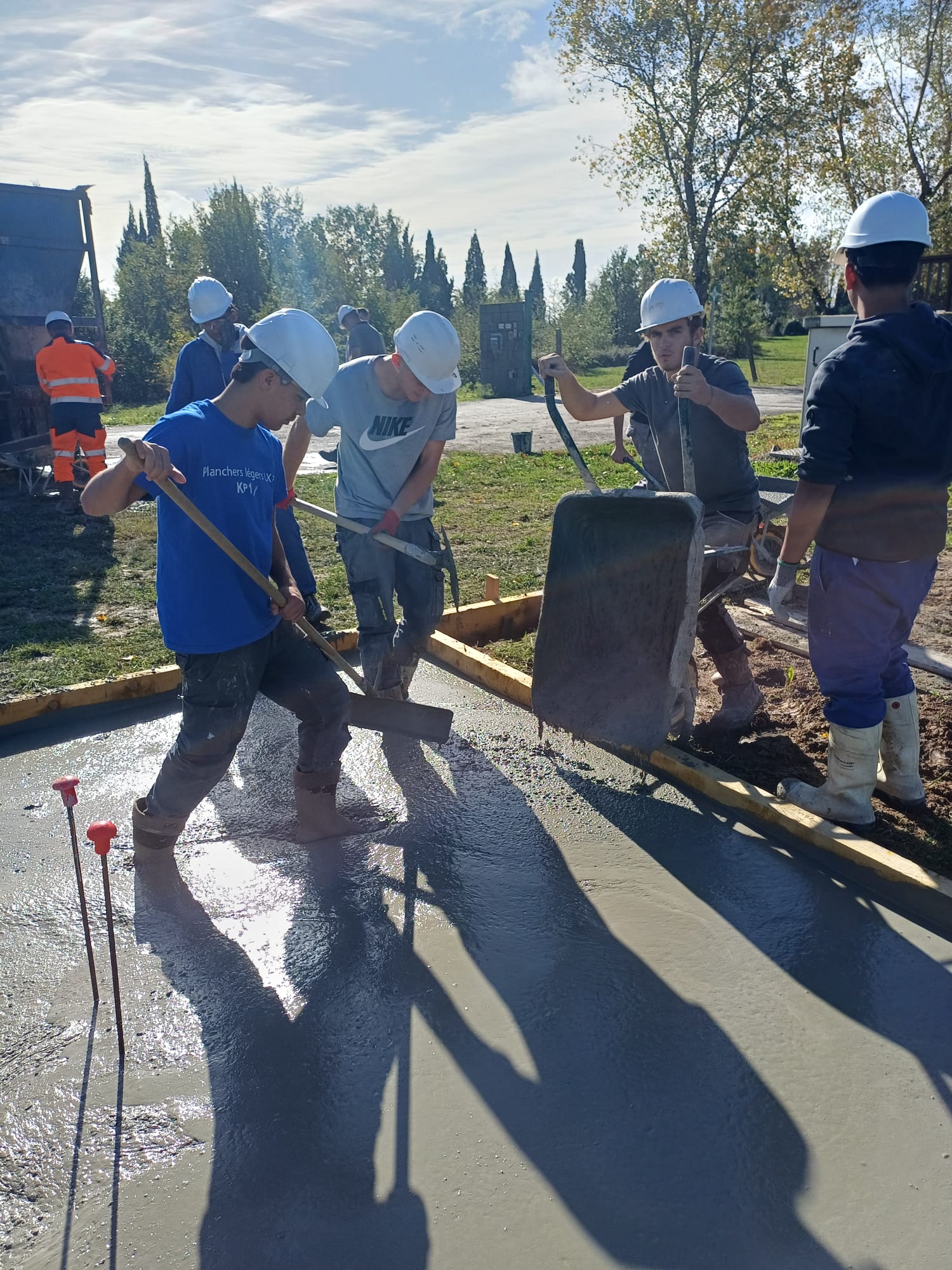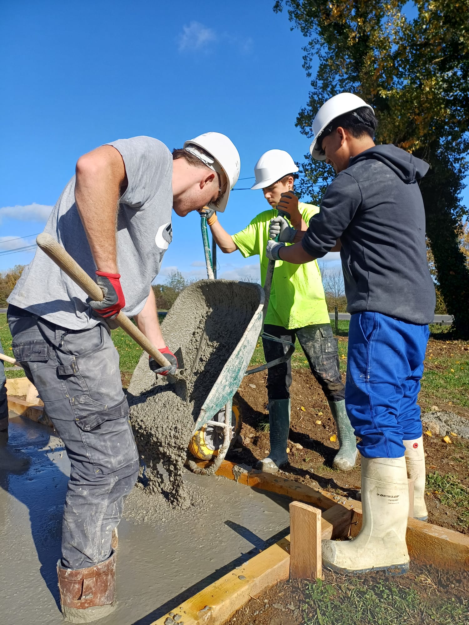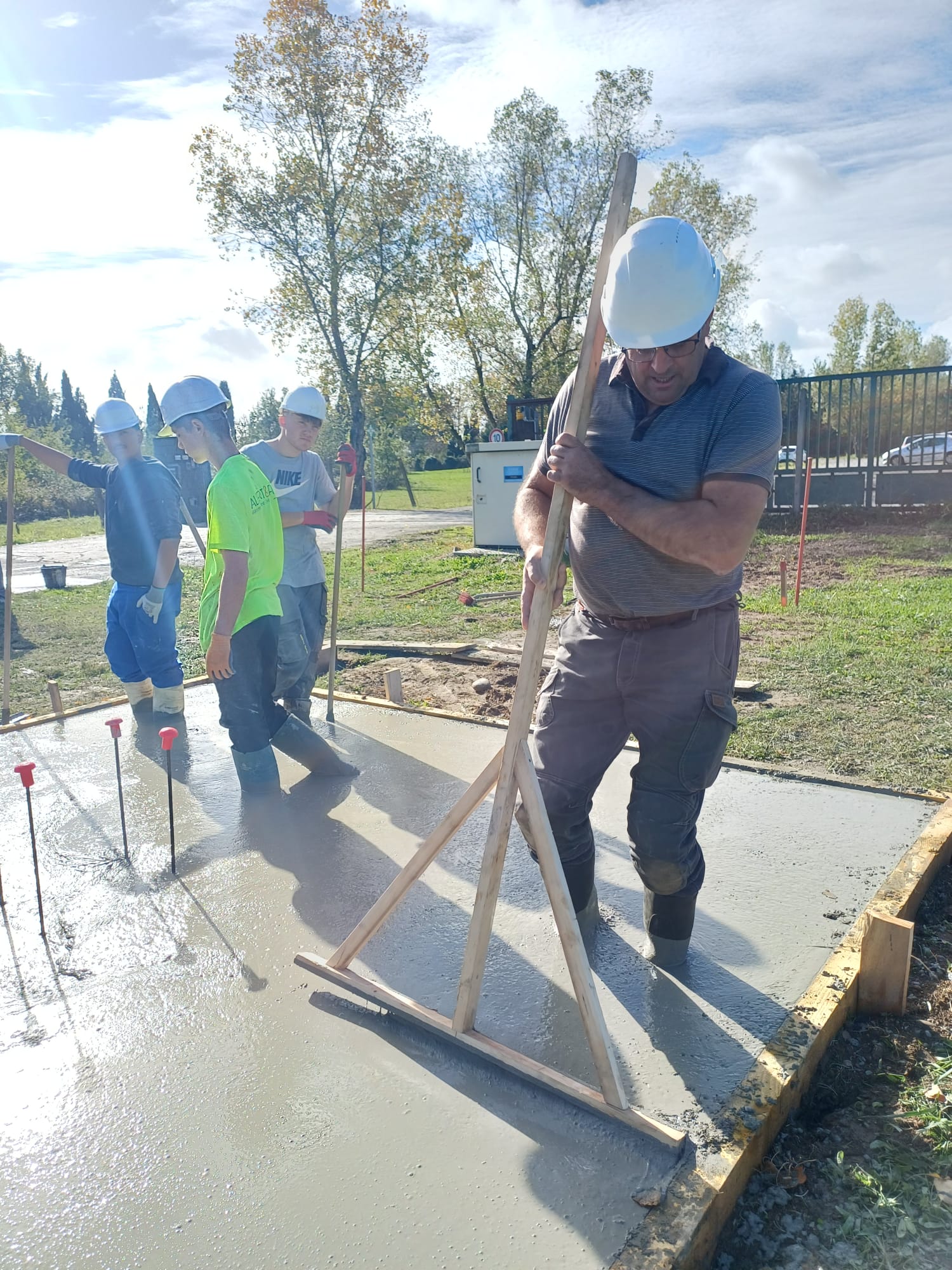 Moins besoin de vibrer le béton... mais nos élèves, eux, ont vibré d'excitation, de fierté et un peu de fatigue devant le travail accompli !