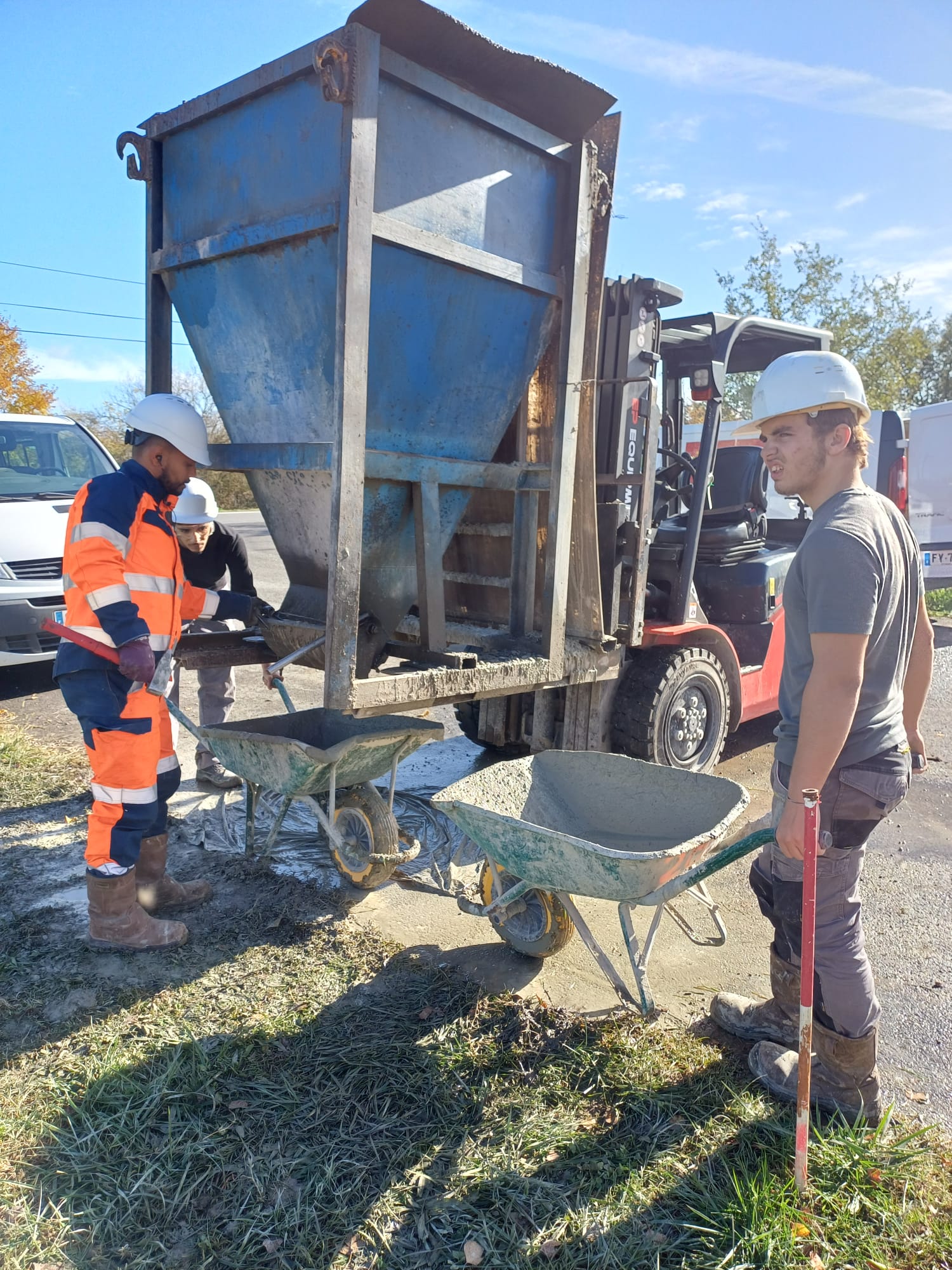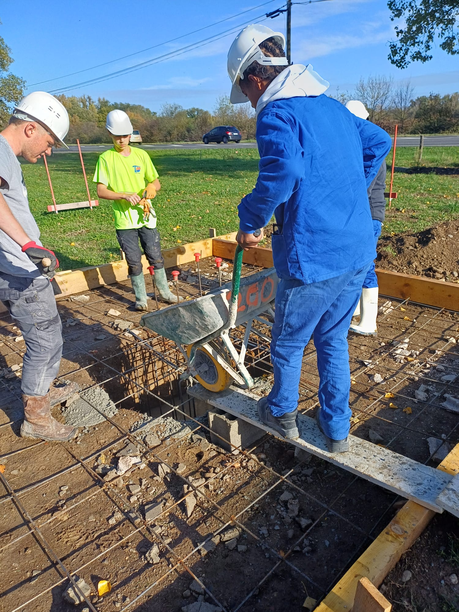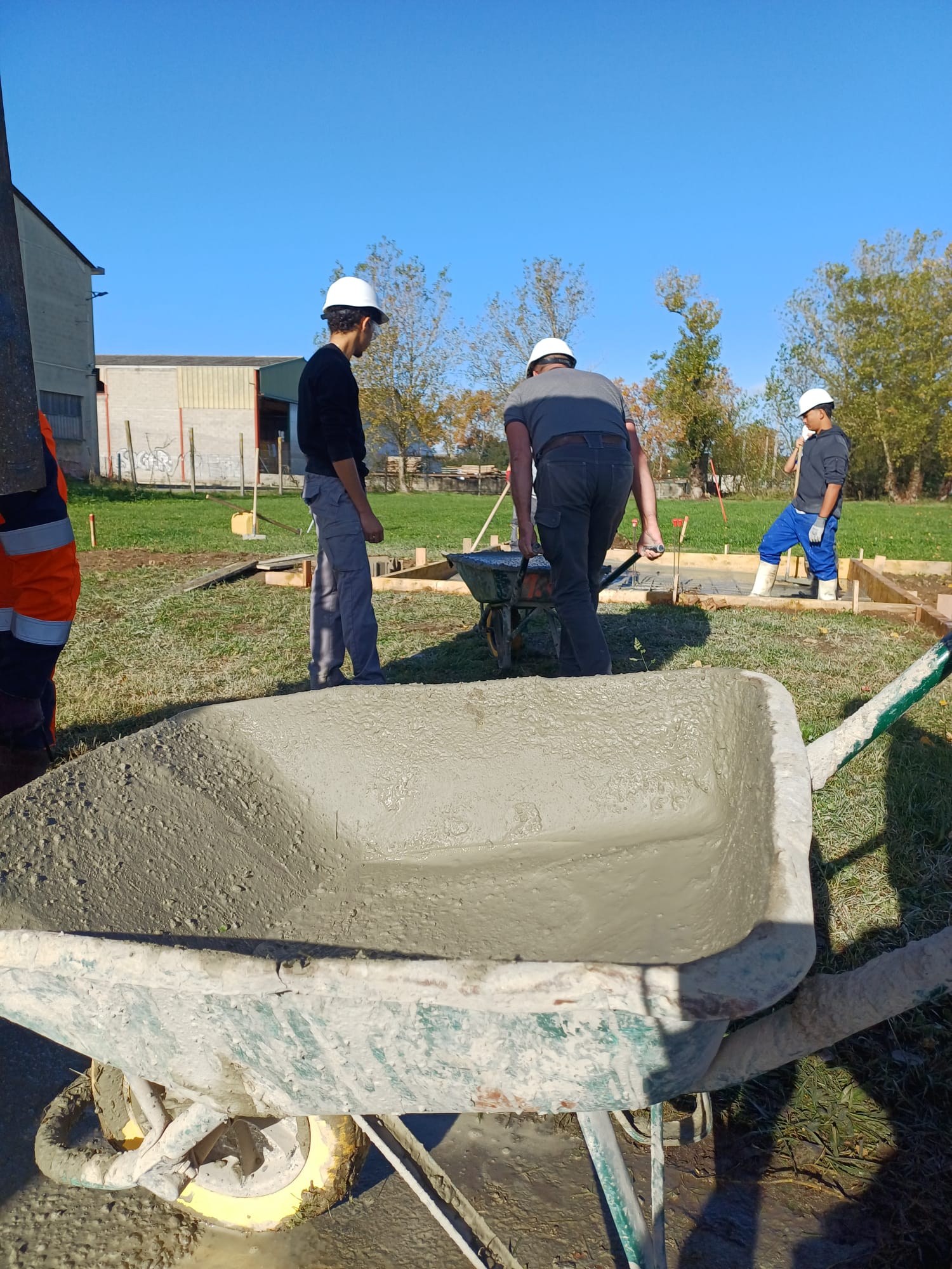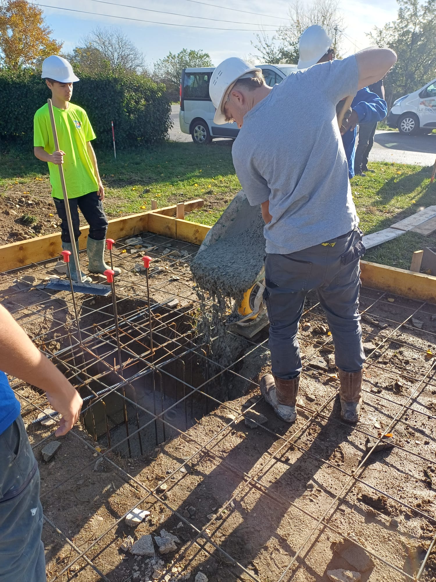 Moins besoin de vibrer le béton... mais nos élèves, eux, ont vibré d'excitation, de fierté et un peu de fatigue devant le travail accompli !